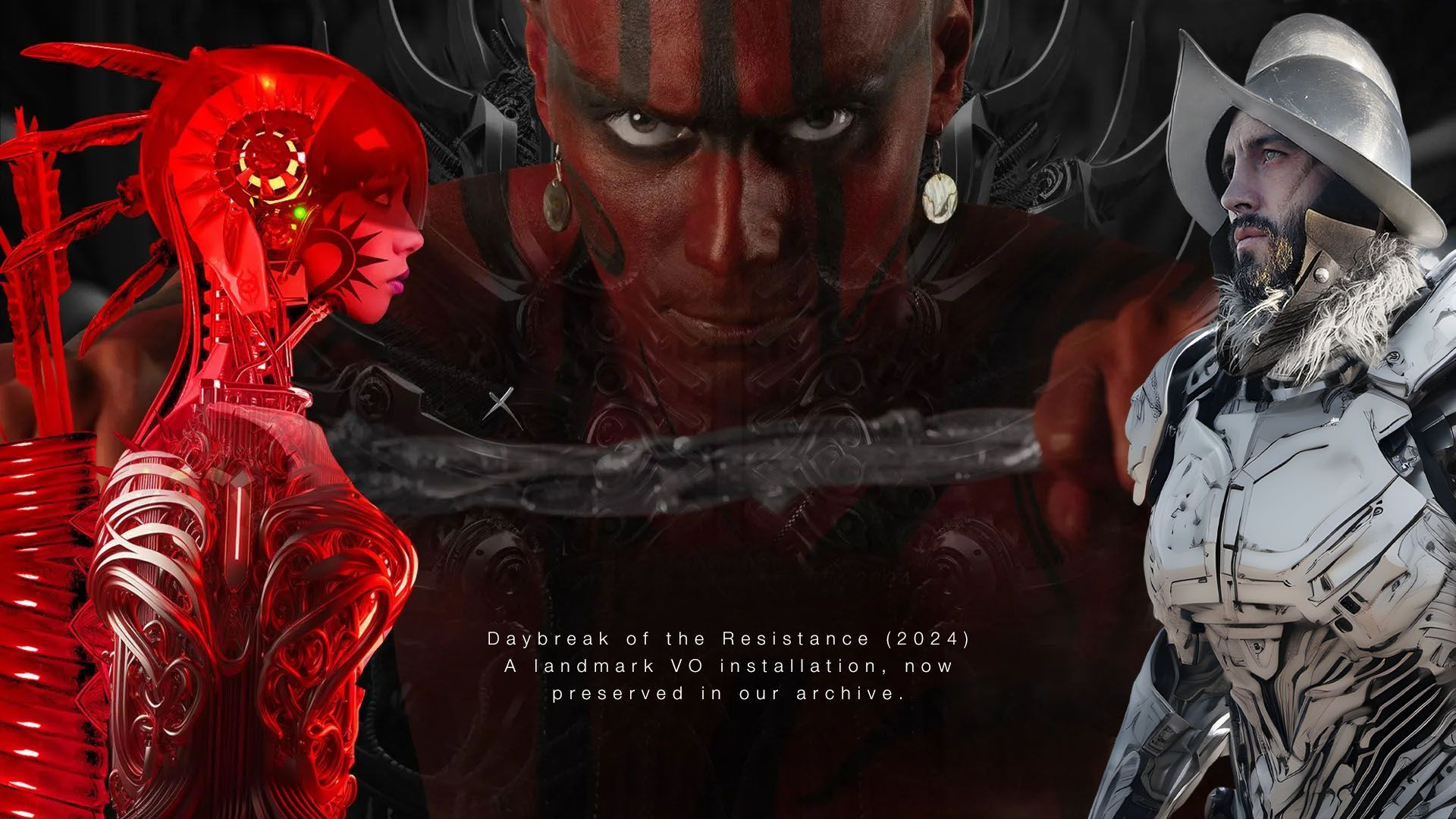 [CONTAINER] in Oga Po’geh, or Santa Fe as it is known today. Here, Po’pay and his Pueblo allies, together with the Recon Watchmen, Runners, and the Blind Archers Army, converge to defeat the destructive Castilian forces once and for all. Ortiz and collaborative artists Morgan Barnard, Jonathan Sanchez, William T. Carson, Patrick Lachman, and Alex Sokol will present the Daybreak storyline in an immersive art experience featuring never-before-seen work in clay, sculptures, paintings, and SFX projection mapping. The Resistance is coming, and it arrives at Daybreak!